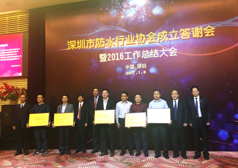 2017年1月8日,“深圳市防水行業(yè)協(xié)會成立答謝會暨2016工作總結(jié)大會”在南國錦繡鵬城隆重召開,會議以“開拓創(chuàng)新,和諧共進,不忘初心,逐夢前行”為主題。出席本次會議的有深圳市住建局,質(zhì)檢總站、深圳市社會組織管理局等政府部門相關(guān)領(lǐng)導、中國建筑防水協(xié)會秘書長朱冬青、副會長苗燕、中國建筑業(yè)協(xié)會建筑防水分會秘書長曲慧、湖北工業(yè)大學院校專家、20多個省市協(xié)會領(lǐng)導以及各地防水企業(yè)代表共計240余人。