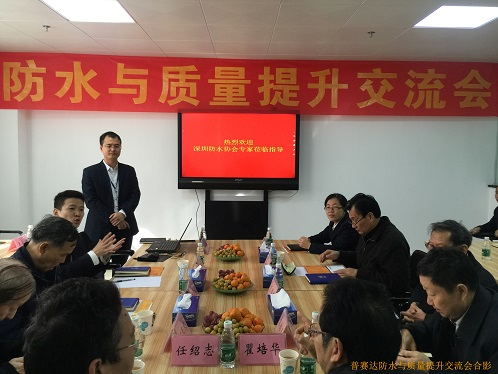2016年1月11日由會(huì)長(zhǎng)瞿培華教授帶隊(duì),深圳市防水(專(zhuān)業(yè))專(zhuān)家委員會(huì)組織部分專(zhuān)家委員走訪調(diào)研了廣東普賽達(dá)密封粘膠有限公司,并針對(duì)“防水與質(zhì)量提升”進(jìn)行了專(zhuān)題指導(dǎo)交流。