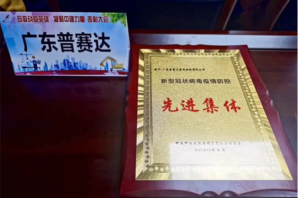 2020年8月10日,中國(guó)建筑五局東莞分公司舉行“致敬戰(zhàn)役英雄·凝聚中建力量”表彰大會(huì),對(duì)新型冠狀病毒疫情防控工作中,涌現(xiàn)的先進(jìn)集體和先進(jìn)個(gè)人進(jìn)行表彰,廣東普賽達(dá)密封粘膠有限公司應(yīng)邀出席,并榮獲新型冠狀病毒疫情防控“先進(jìn)集體”榮譽(yù)稱號(hào)。