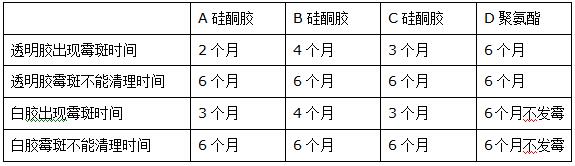 表四:洗臉盆周邊聚氨酯防霉膠與硅酮防霉膠防霉性能對(duì)比