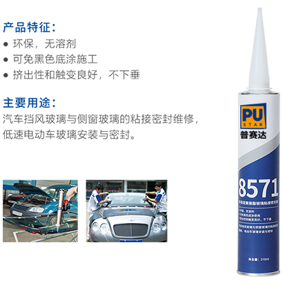 單組分濕氣固化聚氨酯密封膠,具有優(yōu)良的密封性能和內(nèi)聚力,對(duì)被粘基材無(wú)腐蝕,無(wú)污染,與金屬、玻璃等多種基材粘接性好。