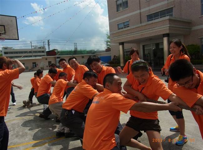 第一部分,拓展活動(dòng)。8月12日上午8:30全體普賽達(dá)人整齊、有序的聚集在行政大樓前,接受公司創(chuàng)始人兼總經(jīng)理任總廠慶的致詞。接下來(lái)普賽達(dá)公司在歡快的鑼鼓聲、震耳欲聾的禮炮聲中拉開了8周歲生日慶典的序幕。上午廠區(qū)拓展活動(dòng)有拔河比賽、羽毛球比賽、乒乓球比賽、摸著石頭過(guò)河等拓展活動(dòng)。每個(gè)項(xiàng)目都有嘉賓參與其中,且所有嘉賓都換上了普賽達(dá)密封粘膠橙色廣告衫。在整個(gè)拓展活動(dòng)的過(guò)程中,映入我們眼簾的盡是一片片、一處處、一點(diǎn)點(diǎn)橙燦燦的色彩。此時(shí)此刻我們已分不清楚嘉賓和員工,只知道我們都是普賽達(dá)人,我們盡情的歡笑、我們快樂的參與,我們爭(zhēng)先恐后向家人展示自己的熱情與活力,讓我們的家人感受到我們永不服輸、敢于拼搏的精神。